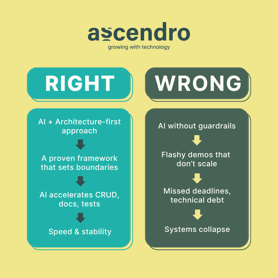 It all depends on which path you take. In our eBook, we unpack what separates the teams that scale with AI from those that burn out in technical debt, complete with lessons learned, real examples and a step-by-step roadmap.